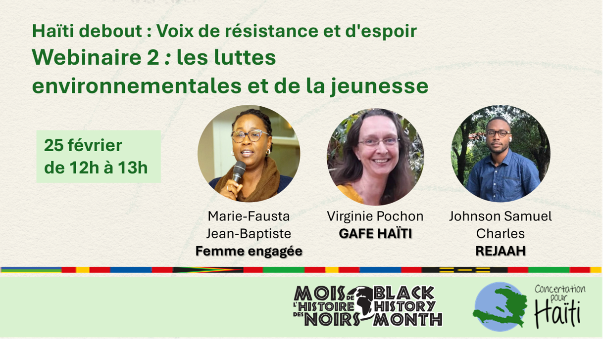 Cet autre webinaire de Concertation pour Haïti portait plus précisément sur l’environnement et la jeunesse, alors qu’un précédent avait traité des femmes et de la paysannerie.